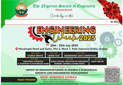 The Scottish Institute for Remanufacturing is committed to supporting the advancement of Remanufacturing, both at national and international level, with a commitment to Sustainable Development. The appointment of Scottish Institute for Remanufacturing Director, Professor Winifred Ijomah, as Senior Special Advisor in Remanufacturing to the Nigerian Society of Engineers (NSE), Oluytole, Ibadan, is part of our continued commitment.